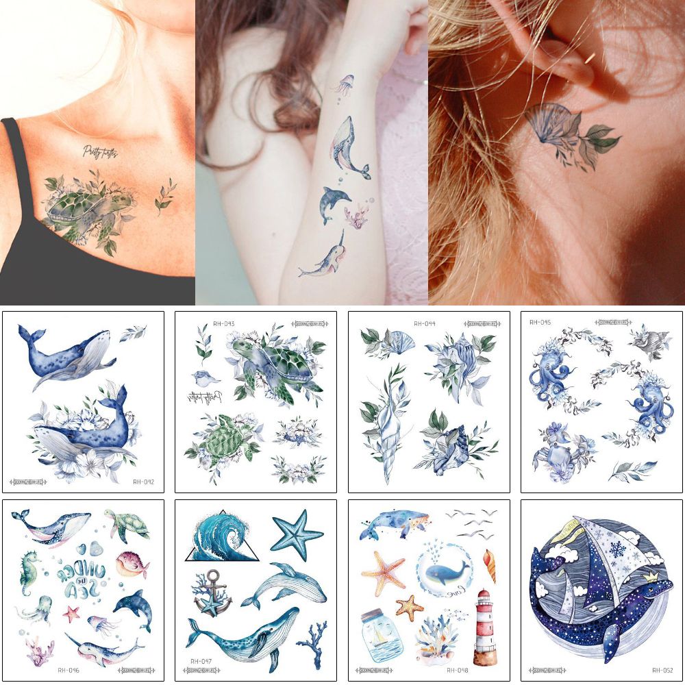 Denizyildizi Balina Kopekbaligi Deniz Hayvanlari Dovmeler Su Gecirmez Gecici Kadinlar Sahte Vucut Sanati Kol Dovme Etiket 6x10 5cm Cocuklar El Dovme Gecici Dovmeler Aliexpress