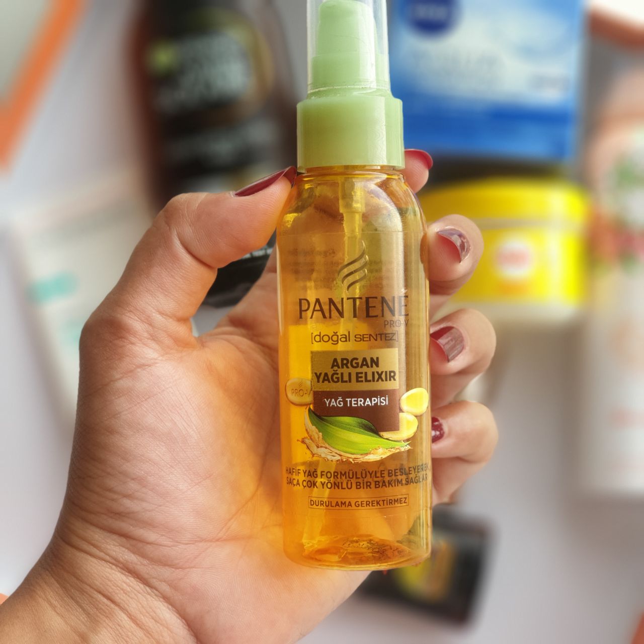 Kirmizi Yanak Pantene Argan Yagli Elixir Mi Elseve Mucizevi Bakim Yagi Mi